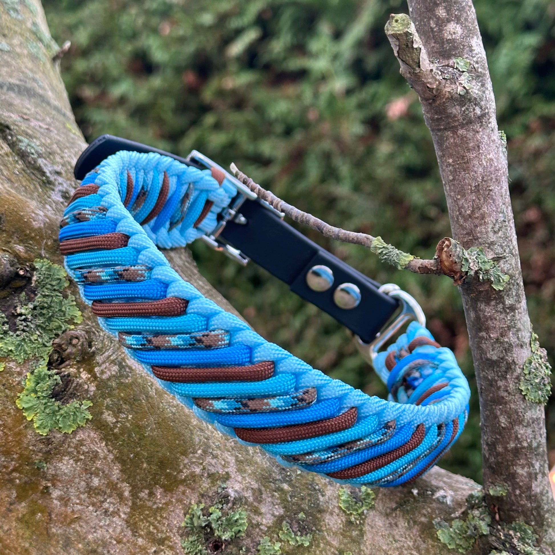 Es sticht besonders durch seine runde, gleichmäßige Flechtung mit dekorativen Farbakzenten hervor. Die Spiralförmig angeordneten Paracord- Stränge sorgen für eine besonders stabile Struktur und eine angenehme Haptik.