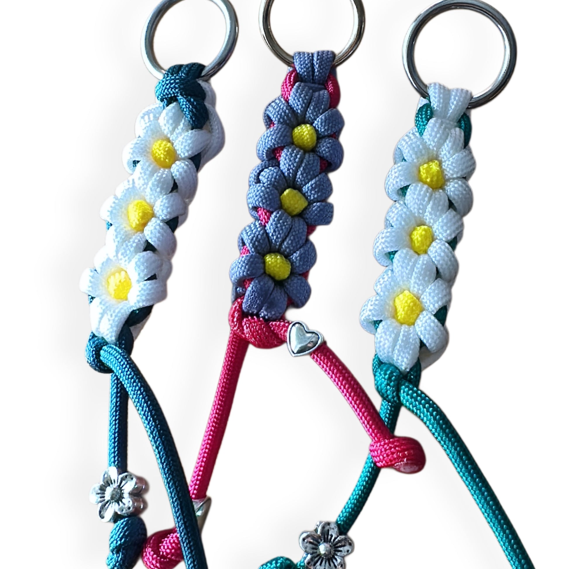 Diese liebevoll handgefertigten Schlüsselanhänger aus Paracord ( 15 cm ) sind nicht nur praktisch sondern kleine Designerstücke für den Alltag. Ob mit detailreichem Blumenmotiv oder in klassischer Flechtoptik, diese Anhänger verbindet robuste Materialien mit einer besonderen, individuellen Optik. Ideal für den Alltag, Rucksack, Taschen oder als dekoratives Accessoire. Dank der vielfältigen Farbvarianten passt der Schlüsselanhänger zu jedem Stil und ist auch eine schöne Geschenkidee.