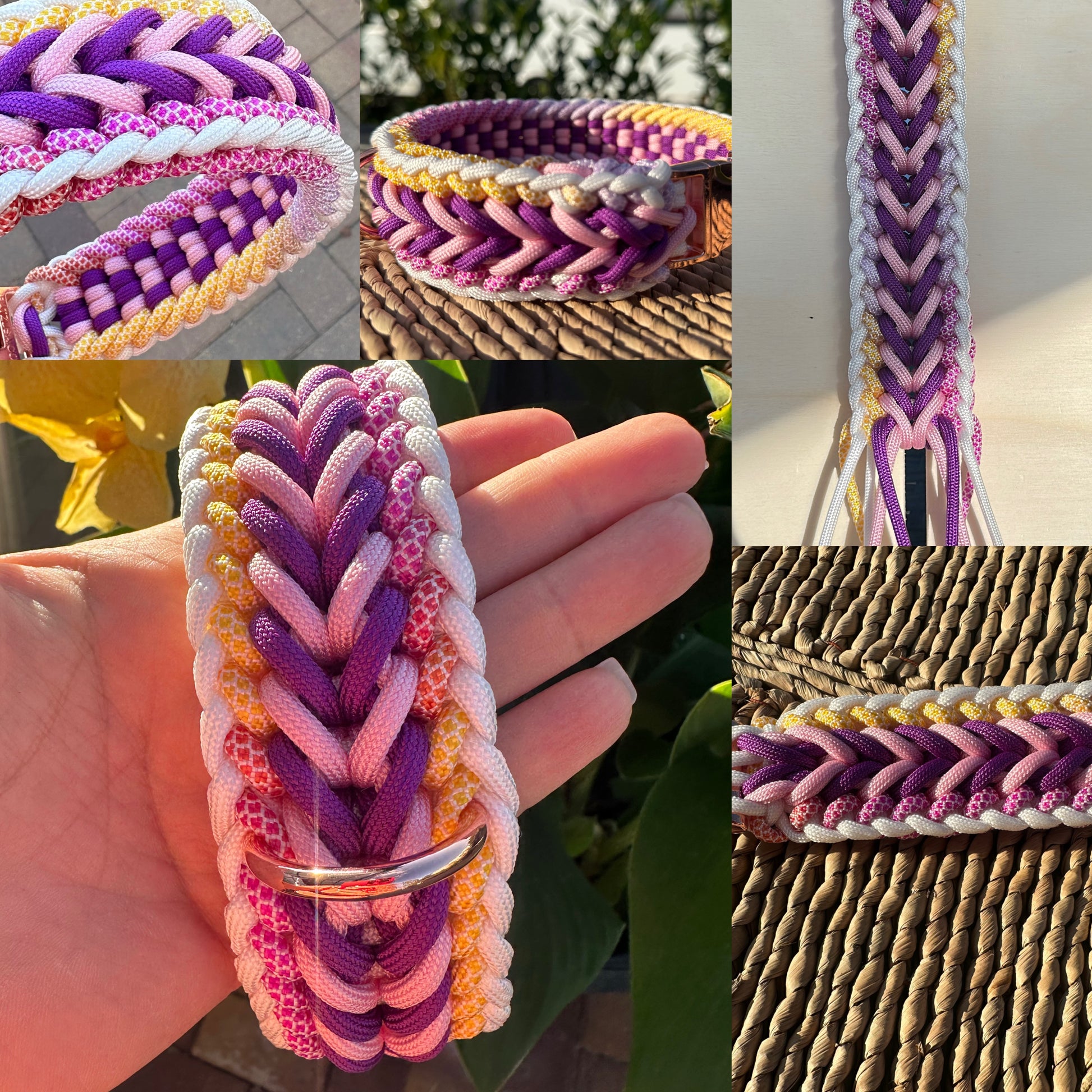 Dieses Paracord Halsband in der Technik "Stubborn" überzeugt durch seine besonders dichte, mehrlagige Flechtung und eine markante, hochwertige Optik. Die aufwendig gearbeiteten Knoten sorgen für außergewöhnliche Stabilität und eine angenehme Polsterung am Hals.