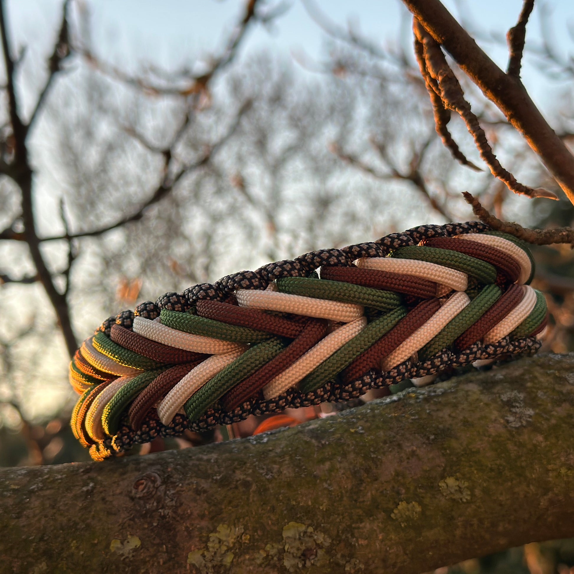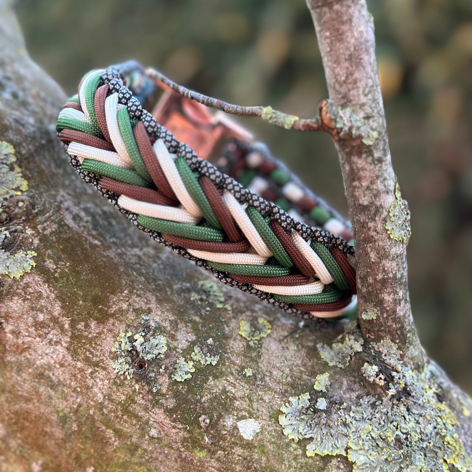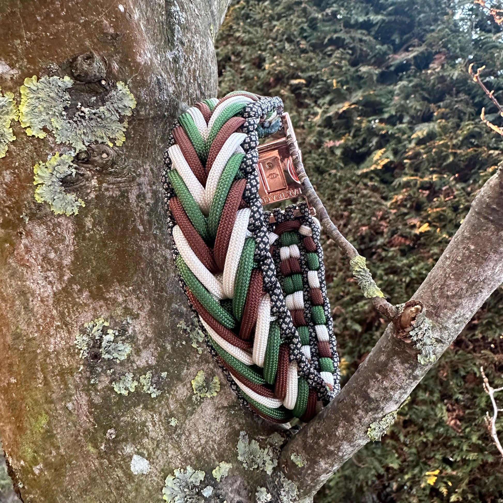 Dieses Hundehalsband V- Weave besticht durch seine markante V- förmige Flechttechnik, die dem Design eine moderne und zugleich zeitlose Eleganz verleiht. Sorgfältig handgefertigt aus hochwertigem Paracord vereint es Stabilität, Komfort und eine edle Optik.